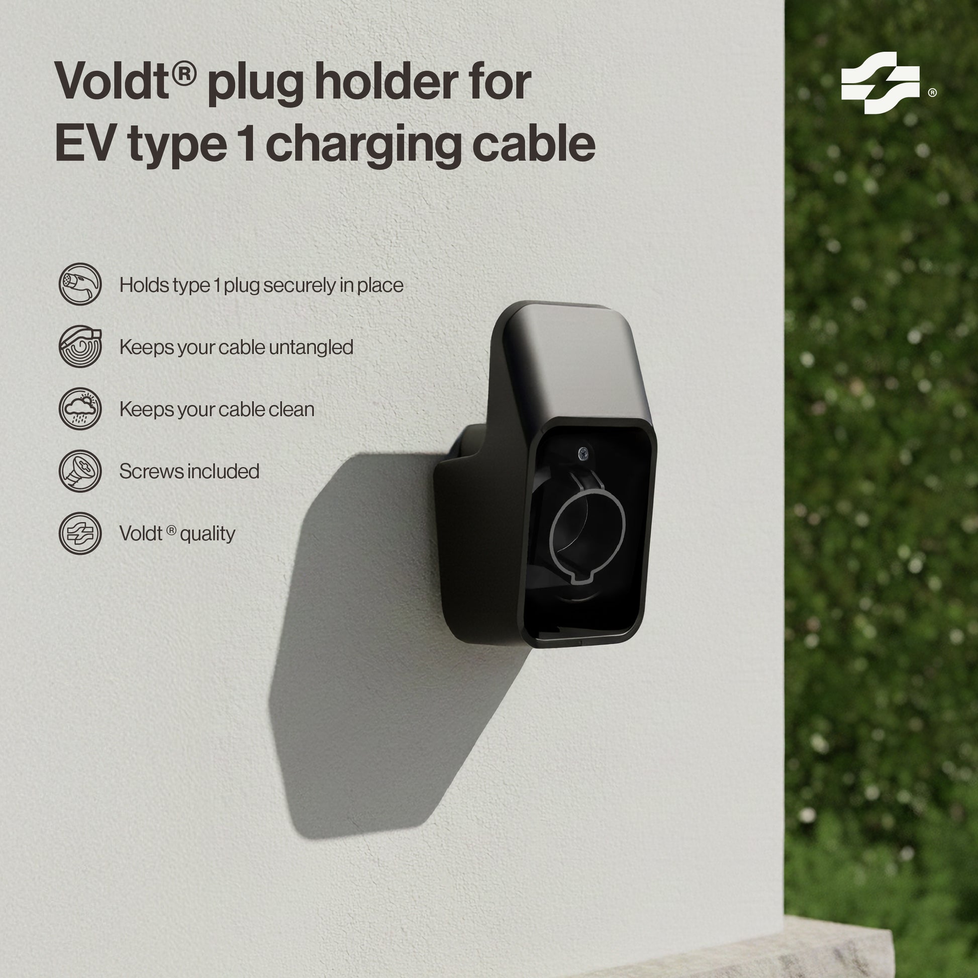 De Voldt® Plug Holder voor EV Type 1 laadkabel biedt een veilige en overzichtelijke opbergoplossing voor elke Type 1-stekker. De houder is gemaakt van lichtgewicht PVC en houdt de stekker stevig op zijn plaats wanneer deze niet in gebruik is. Zo wordt voorkomen dat de connector op de grond ligt en onnodig slijt. De benodigde schroeven voor een snelle en stabiele wandmontage worden meegeleverd. De houder draagt bij aan een nette laadomgeving, zowel binnen als buiten. De vorm is afgestemd op de contouren van een Type 1-stekker, waardoor de connector zonder kracht netjes vastklikt. Dit vermindert spanning op de kabel en helpt de levensduur van de laadapparatuur te verlengen. De montageplaat positioneert de stekker in een comfortabele hoek voor dagelijks gebruik.