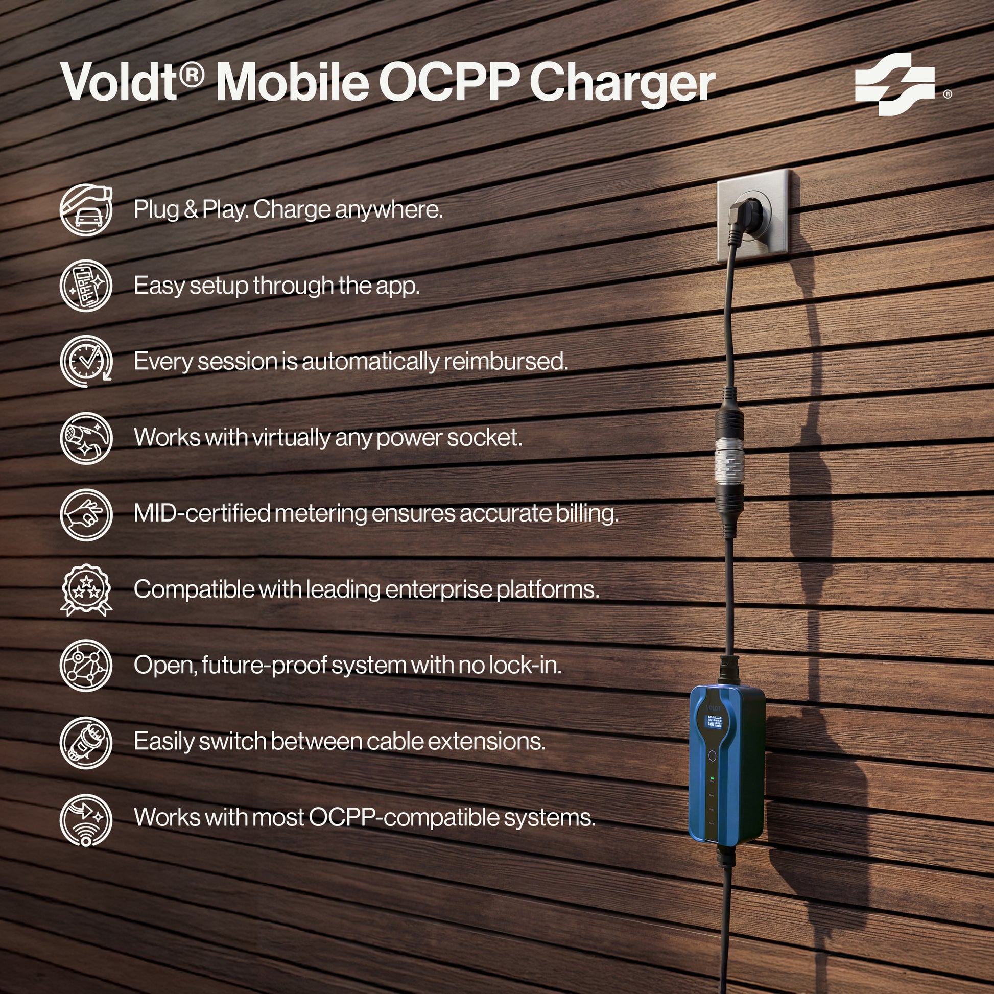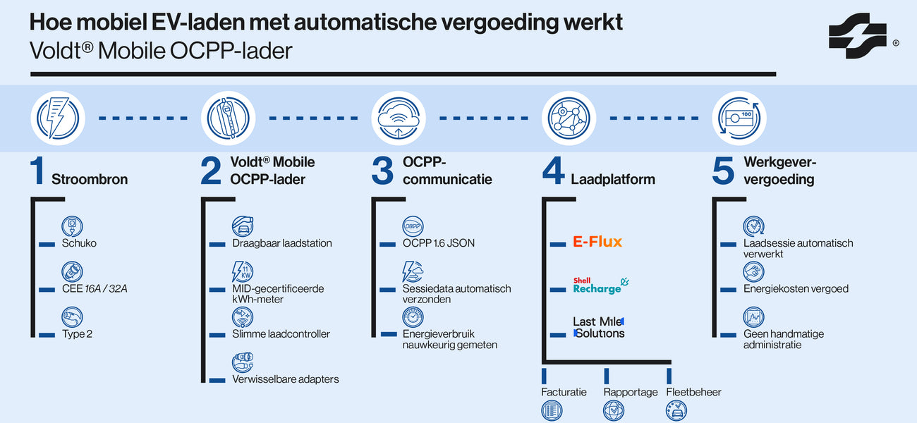1. Wat maakt de Voldt® Mobile OCPP-oplader anders dan een standaard oplaadkabel?